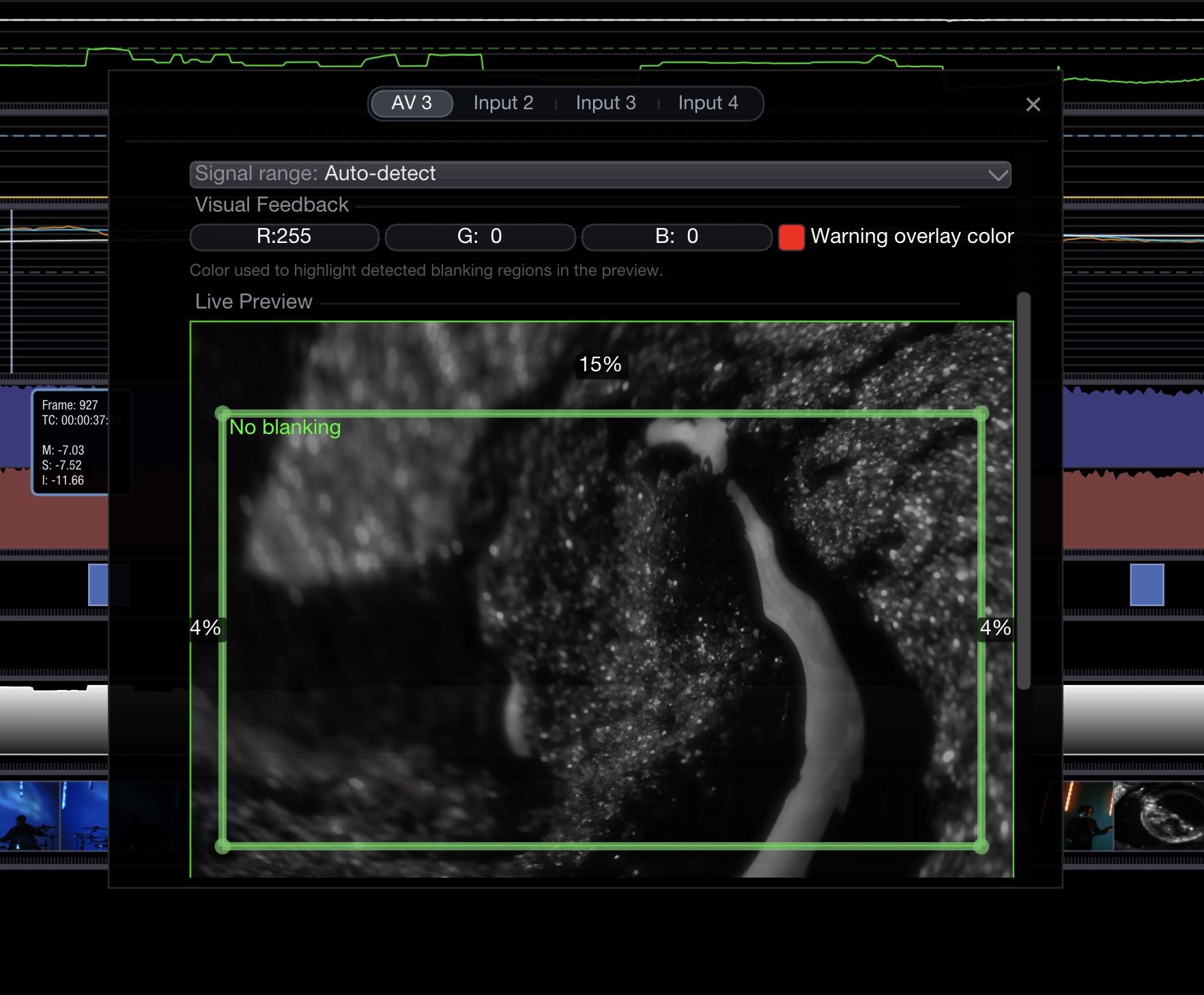 * Overlay is drawn in the source viewer when blanking is detected.