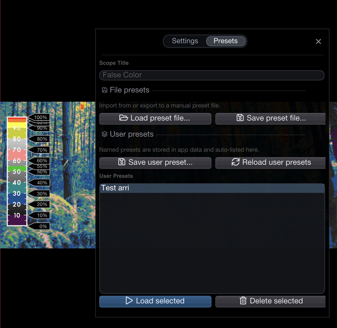 <figure><img src="https://565437294-files.gitbook.io/~/files/v0/b/gitbook-x-prod.appspot.com/o/spaces%2F-MFqn5MuayPgQPMZ9pwf%2Fuploads%2Fgit-blob-852f52396009b9f4c104b1a049abc19f4969873a%2F2026-02_false-color-presets.jpg?alt=media" alt=""><figcaption><p>False Color Preset Manager</p></figcaption></figure>