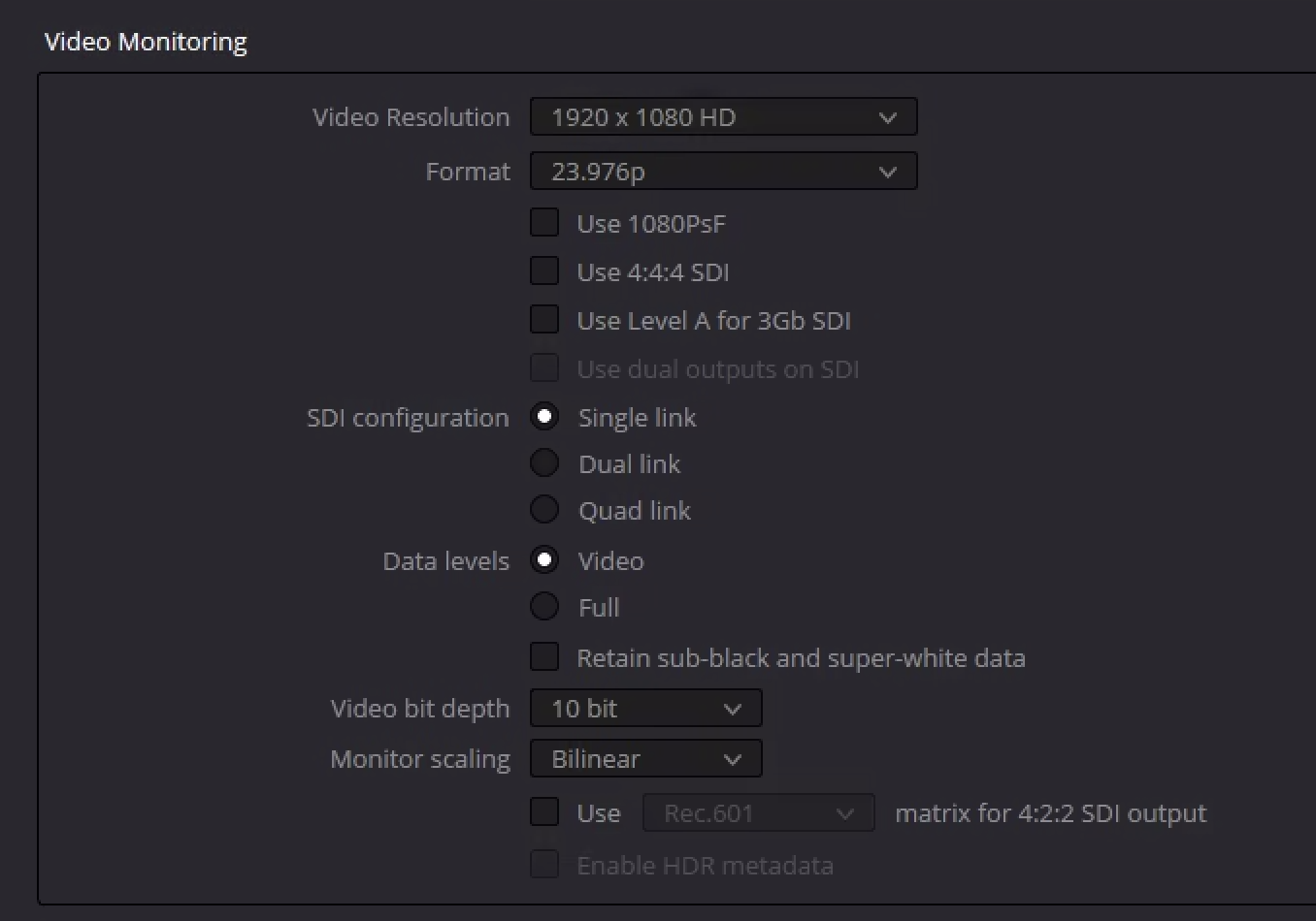 *The following configuration has been tested with DeckLink IP/SDI HD cards in a direct connection setup, successfully streaming 10-bit YCbCr video between DaVinci Resolve and monitoring applications.*