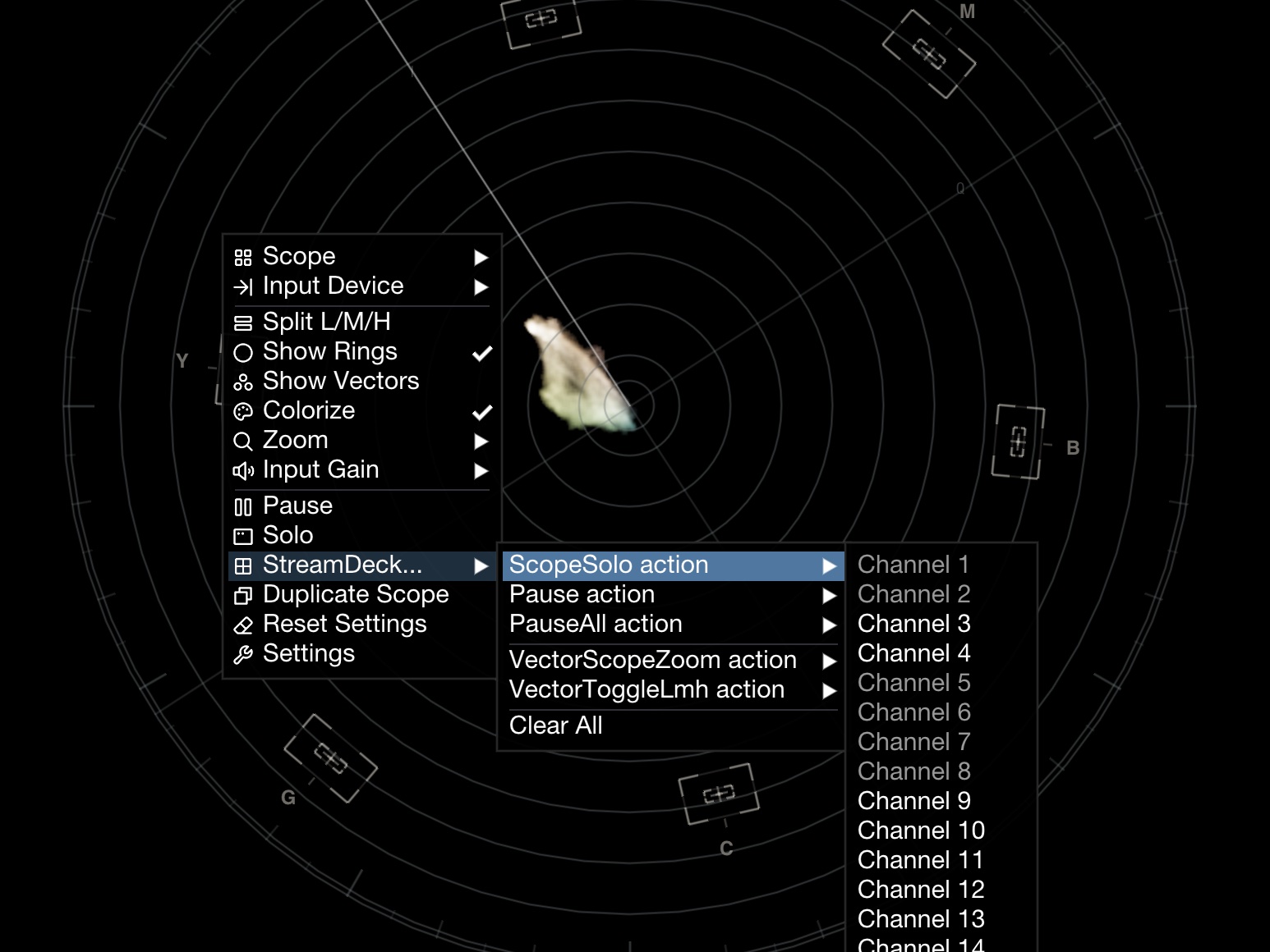 Once the connection is configured, we can access the StreamDeck submenu in various places in OmniScope to create and manage mappings.